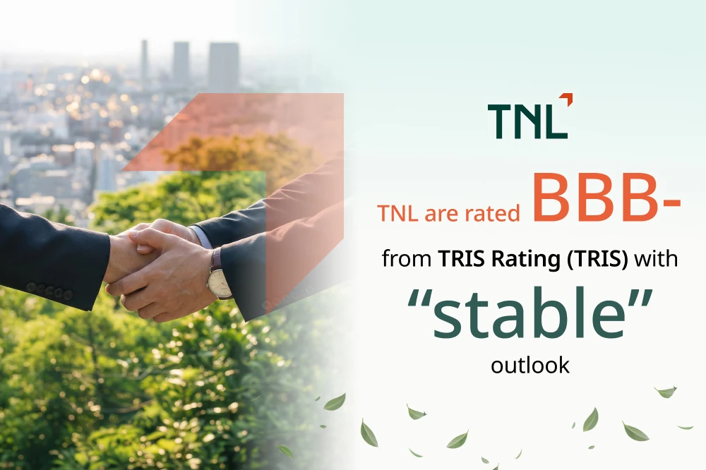 TRIS Rating stated that TNL’s credit rating is underpinned by the Company’s strong capital position, low debt level, adequate liquidity, and diversified funding structure. In addition, the Company has strong major shareholders, namely Saha Pathana Inter-Holding Public Company Limited, or SPI, and BTS Group Holdings Public Company Limited, or BTSG, both of which maintain close collaboration with the Company and continue to provide strategic and financial support to reinforce TNL’s long-term growth prospects.